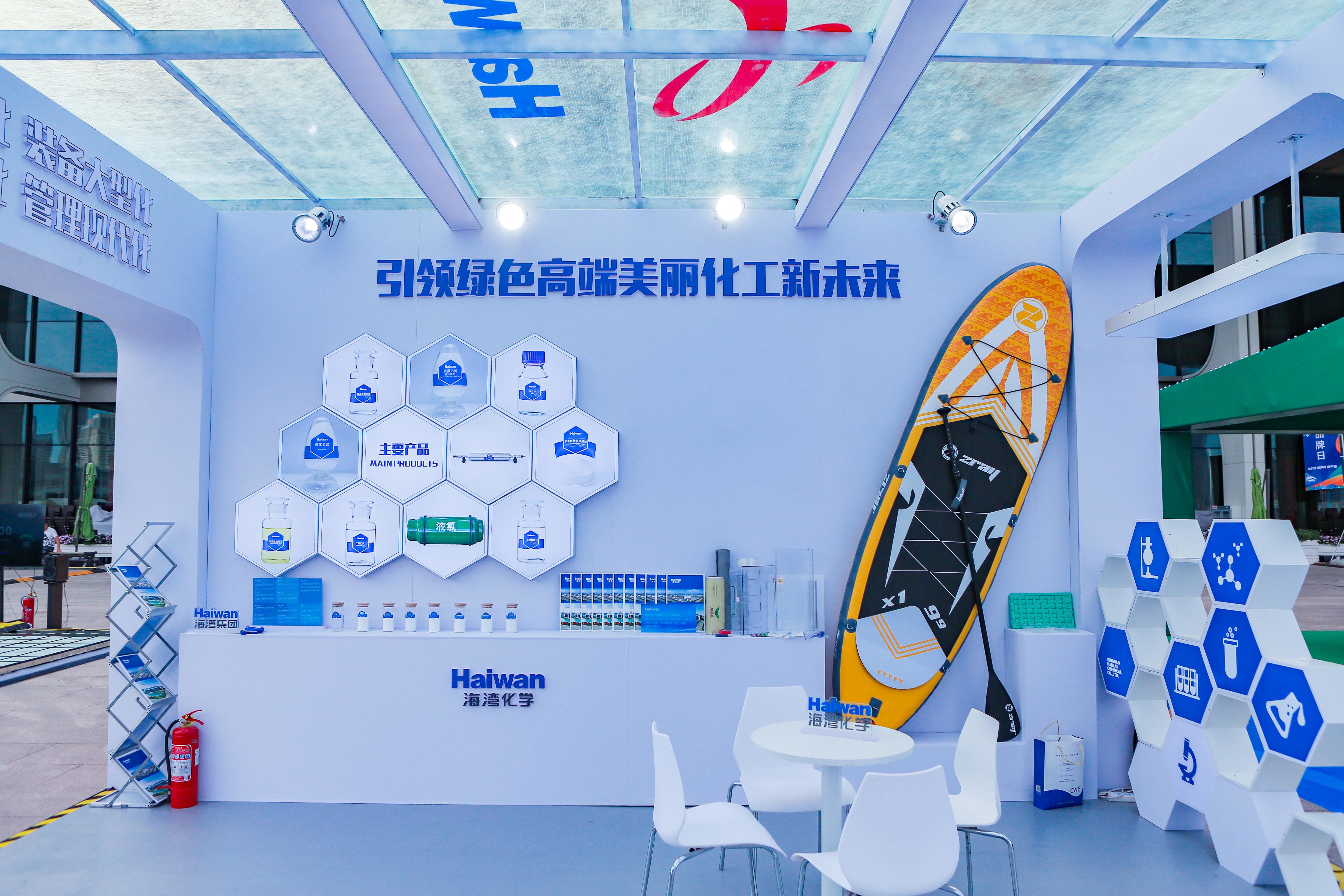 展台(tai)以藍白相(xiàng)間的企業(ye)色爲主基(ji)調,活潑的(de)化學💁元素(su)點綴其間(jian),現代化的(de)園區背景(jing)盡顯企業(ye)綠色🍓發展(zhǎn)的成就,榮(rong)譽圖片牆(qiang)🈲再現企業(ye)鳳凰涅槃(pan)、浴火重生(sheng)的發展曆(lì)程。皮劃艇(tǐng)、遊泳🌈圈、冰(bīng)箱等下遊(you)應用産品(pin)整齊擺放(fàng),向公衆傳(chuan)遞了🏃化工(gong)創造✏️美好(hǎo)生活㊙️的價(jià)值理念。