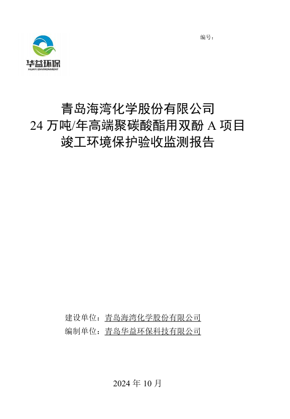 24萬(wàn)噸年高(gāo)端聚碳(tàn)酸酯用(yòng)雙酚A項(xiang)目驗收(shou)-公示稿(gao)